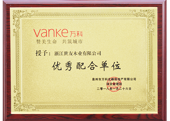 泉州萬科:優(yōu)秀配合單位