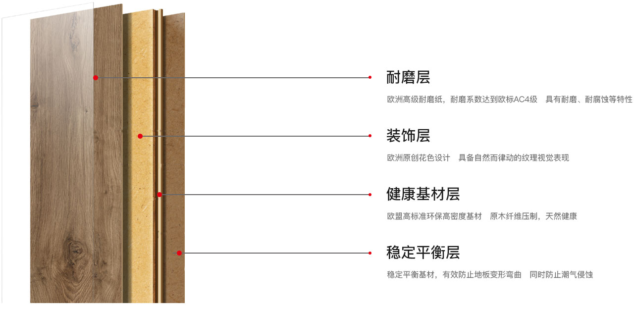 刻標(biāo):耐磨等級達(dá)到AC4級耐磨標(biāo)準(zhǔn)